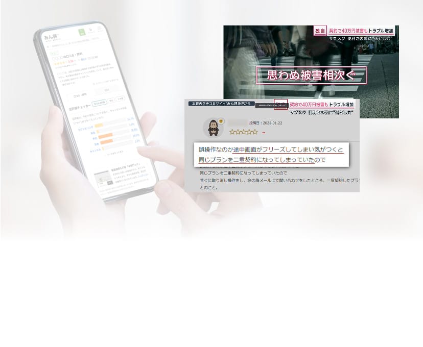テレビ朝日「報道ステーション」のニュースでよく起きている定額制サービス「サブスク」のトラブルに関して実態のわかる本音の口コミサイトとして使用されました
