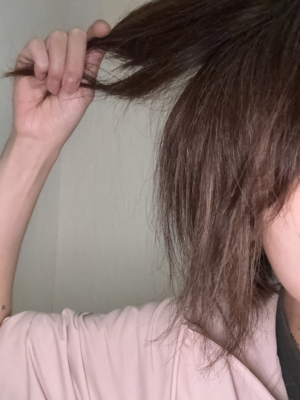 続けて、ハサミのカットでも、バツバツ切り始め、私の要望とは程遠い、5センチぐらいカットしてきました。