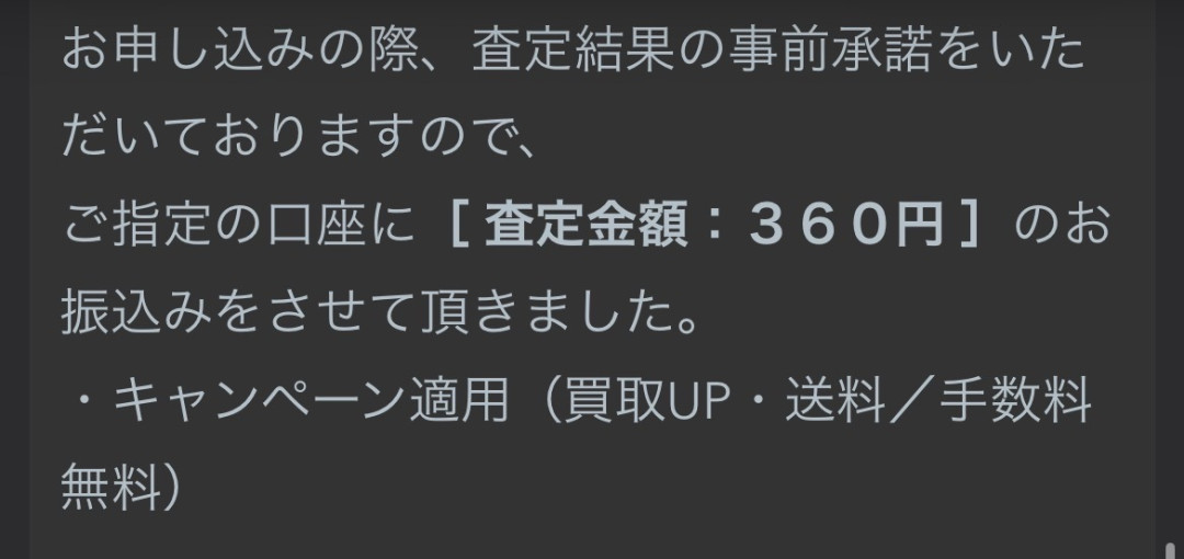 査定額を一切連絡せずに「振り込み完了メール」がいきなり届きます。