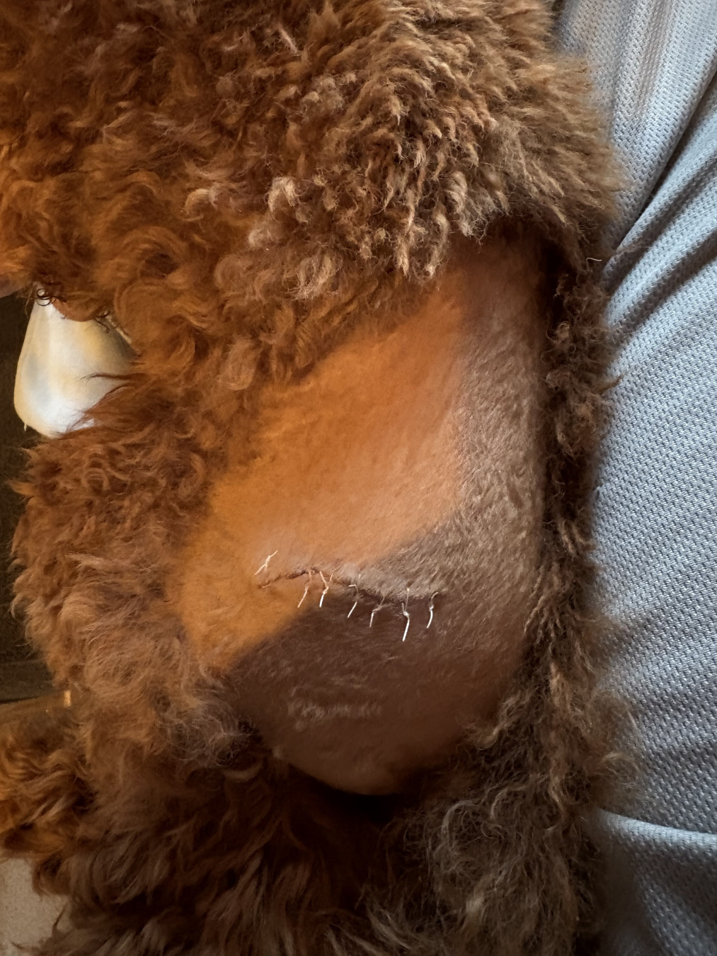 まずワンちゃんの説明で、この子はデベソなんですが出てる部分は指で押し込んで戻る様なら何も問題有りません。と説明を受けました。