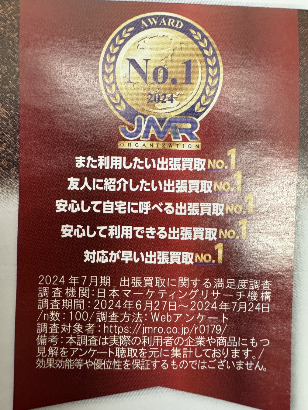 関東のお店に行きましたが、査定を希望と言うと
