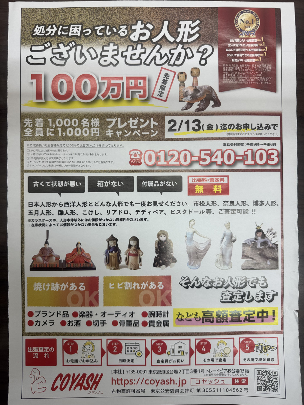 その後もCoyashiの広告チラシを見ますが、ミシンやカメラ以外の(どんな人形でも買います)もあるので、皆さんご注意下さい。