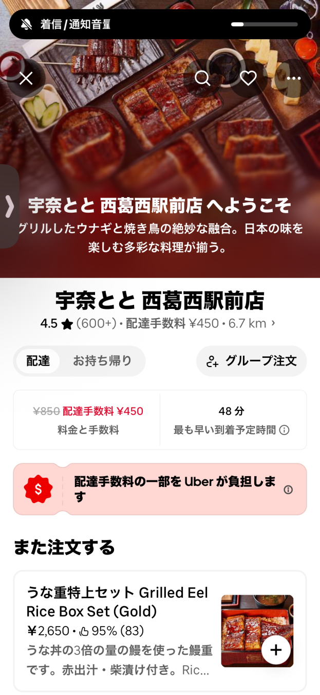 東京出張、ホテルでウーバーで鰻重注文