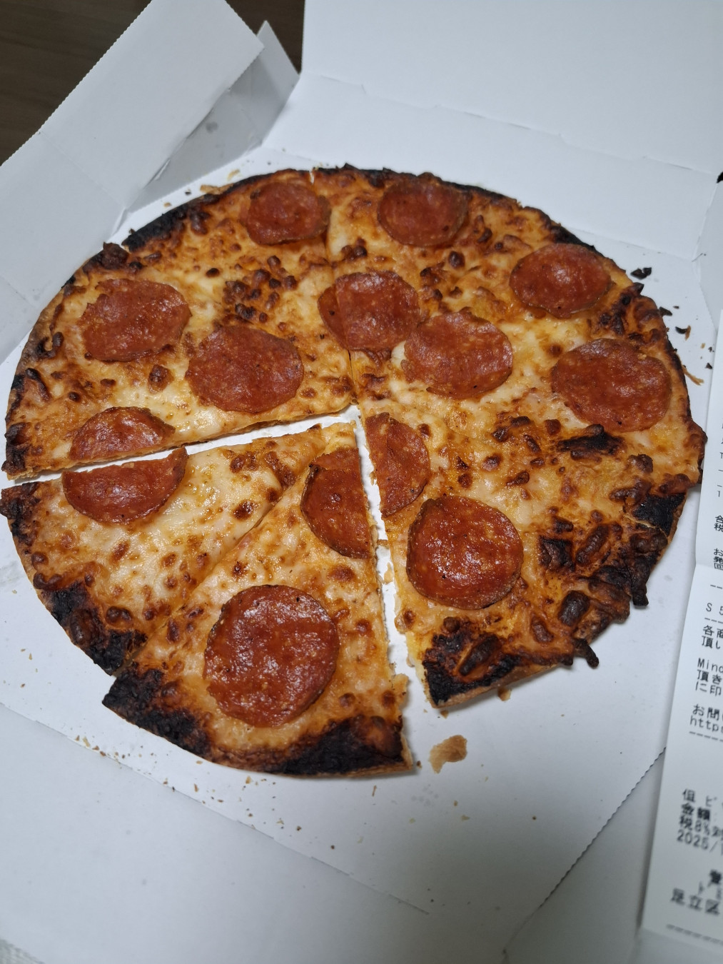 家に帰り箱を開けるとアメリカンのハーフにはペパロニ10枚程度。チーズはカチカチ。冷たい状態でした。えっ!何?って感じありえない。パンフの写真と違い過ぎる。確認の為にお店に電話すると、忙しい中やっているので。と言われました。全く反省なしといった感じでした。