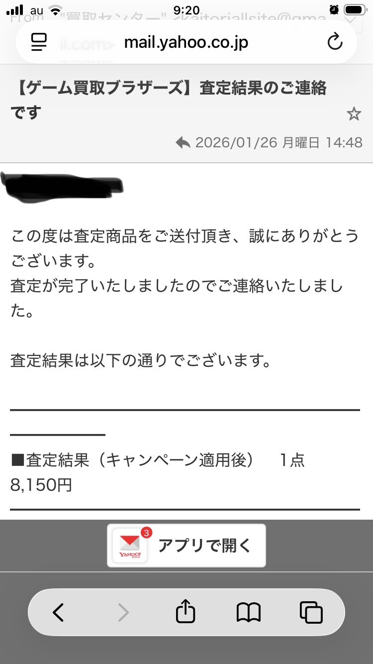 先ずSwitch本体を査定に出したつもりだったので2点の内訳を問い合わせるとスルー。(実はソフトが差しっぱなしだった)