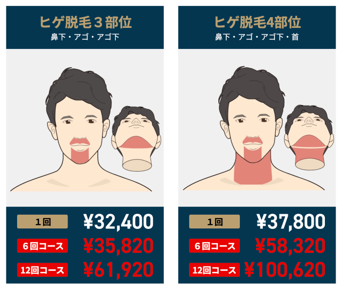 これらはおそらく、ヒゲ脱毛完了コースのヒゲ3部位(鼻下・アゴ・アゴ下)のみの情報を中心に、おおよその施術料金を予想したものだと思います。