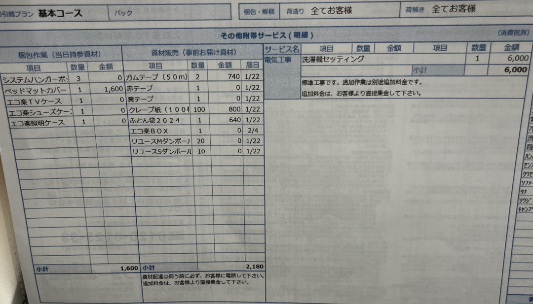 ②オプションで洗濯機セッティングを付けたが当日に何もしてもらえない