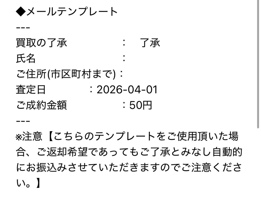 買取依頼書も封入していましたが、見落としてたようで書いてくださいと連絡が来たりしたので、ちゃんと確認等してない会社なんだと認識しました。