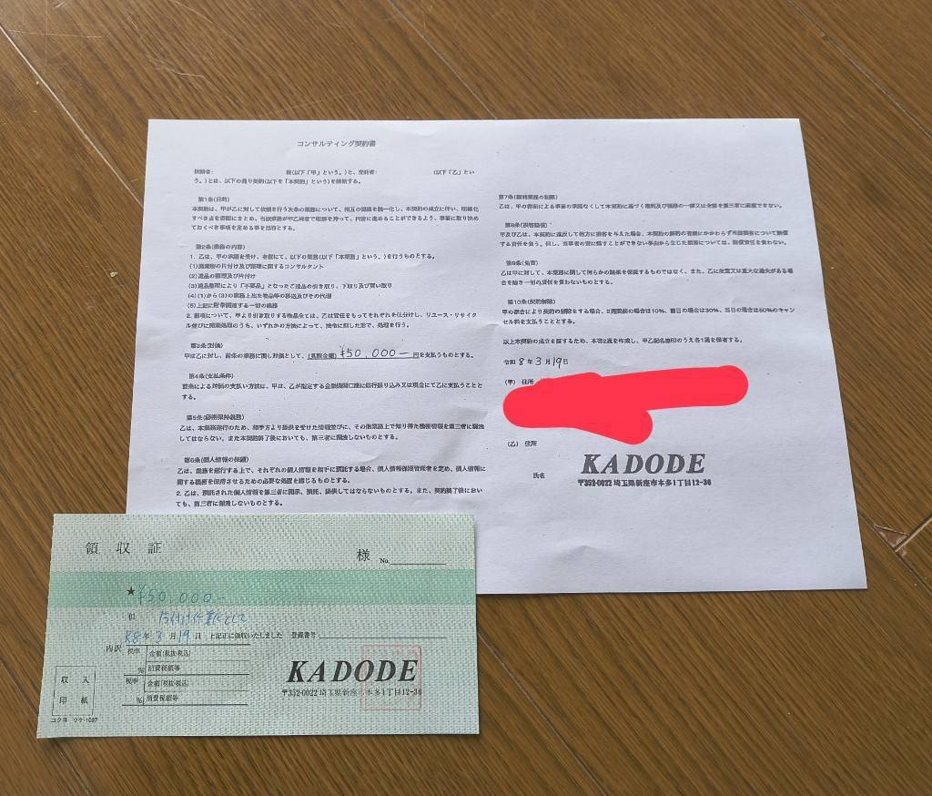 後から振り返ってみれば怪しさ全開だったのですが、元々処分するつもりのなかった家電が使えないと分かり、大慌てで回収を申し込んでいたのと、退去日が間近に迫っていたこともあり、5万円に安くしてもらってその場で決済をしてしまいました。今となっては後悔しかありませんが、自分の世間知らずだったと反省しています。
