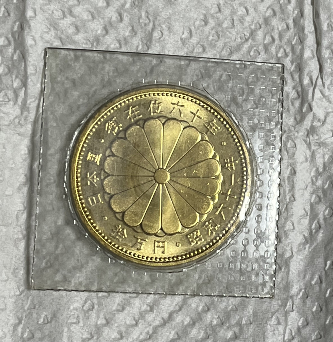 買取大吉 ジョイナステラス二俣川店で、天皇陛下御在位60年 10万円記念金貨(昭和61年発行、