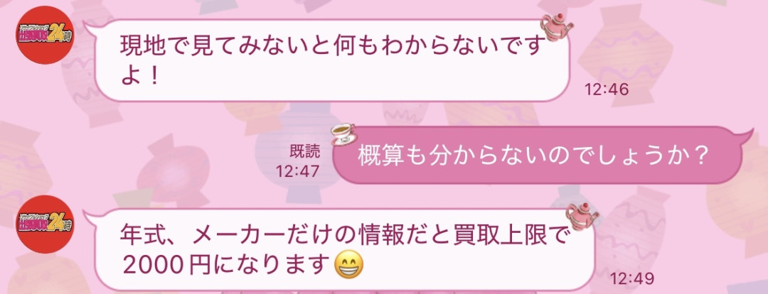 他の買取店で金額が付いていましたが、いろんな店の金額も知りたくて連絡してみました。