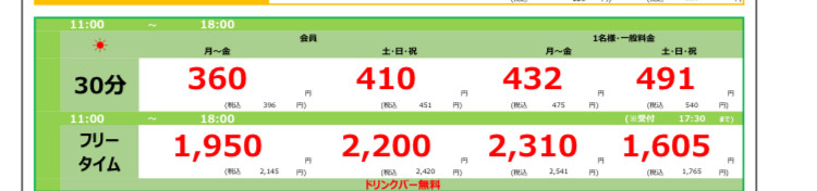 どこの県でも1人に全然優しく無い、これは岩手県の話し、平日の夜、金額確認したら、フリータイムは2倍の料金を求められました。1人フリータイム4千円以上するという、混んでいるわけでもないそうですが、ありえない!