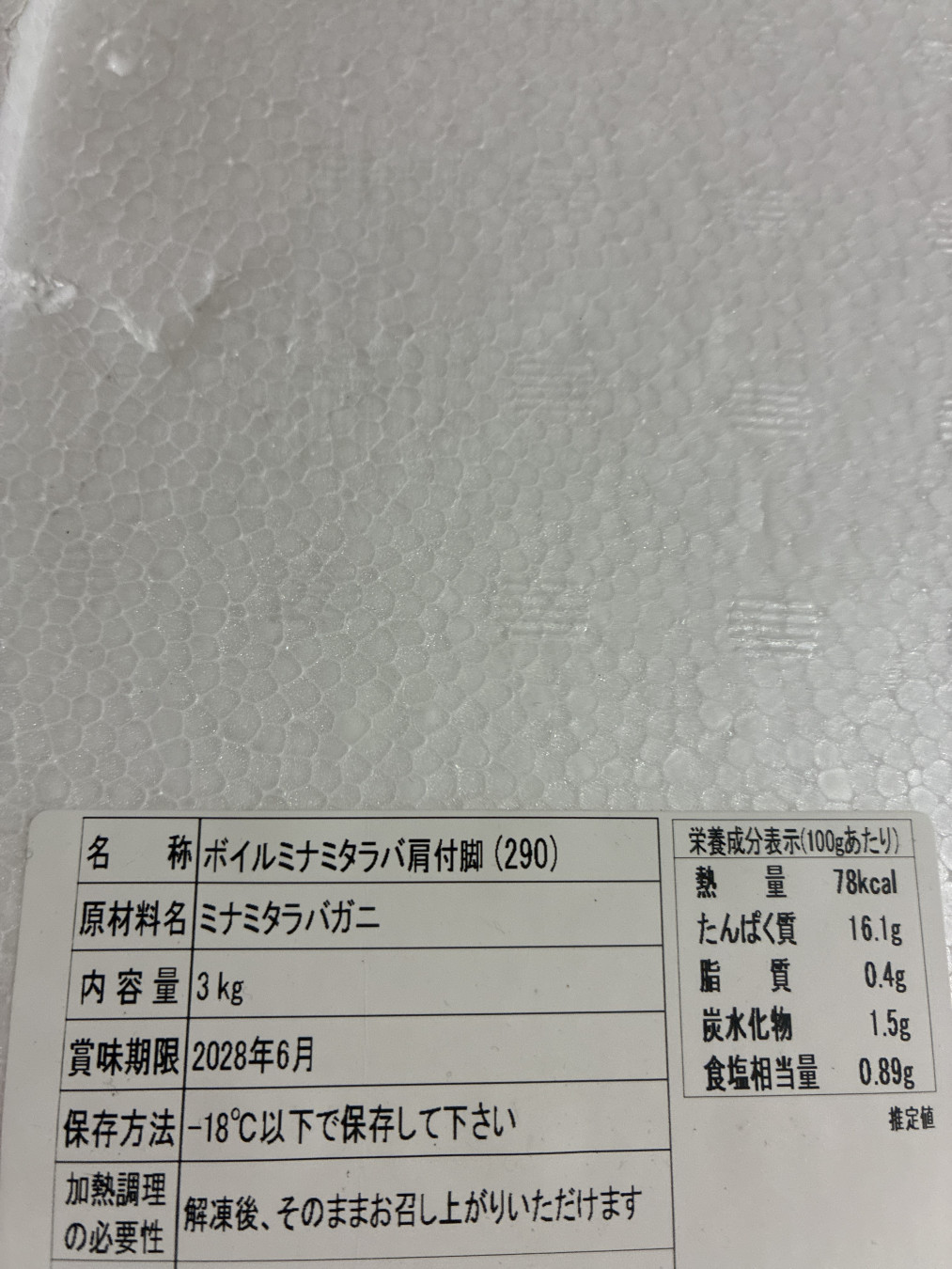 ネットショップで南たらばボイル肩付きを3.6kg購入しました。