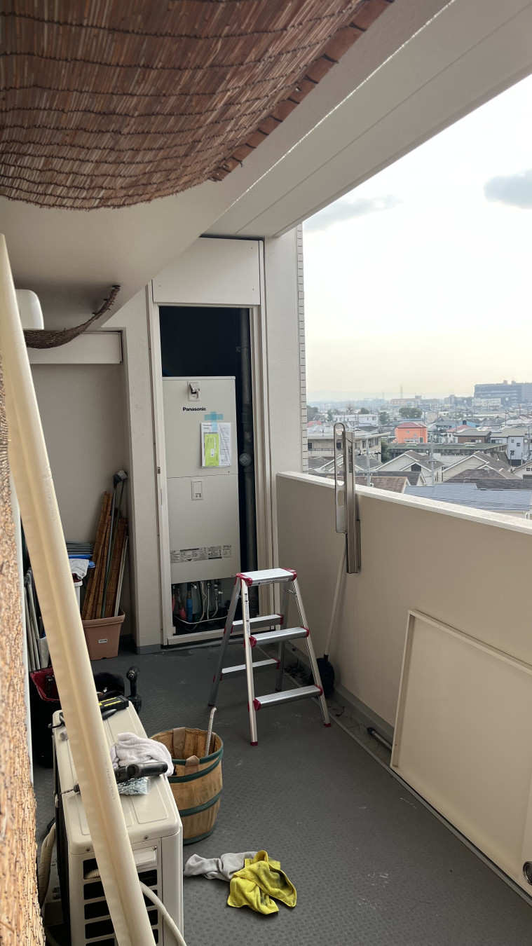 工事は給湯器と暖房乾燥器の据え付けで、信号ケーブルの再利用で断線が見つかり、はじめ上手く動作しなかったが今後の断線防止処置をしてもらい工事完了した