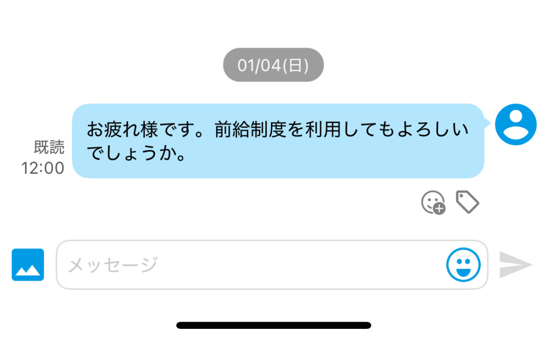 前給制度を利用しようとしても、店長も分からない、エリマネに関してはラキール(シフト提出や新メニューの情報を貰うアプリ)のDMを既読無視です。福利厚生の所にDMしましたが、既読すらつきません。お給料日が10日で10日が土日祝の場合は後ろ倒しされます。成人式に間に合わせようとしておりましたが、誰も役に立ちません。