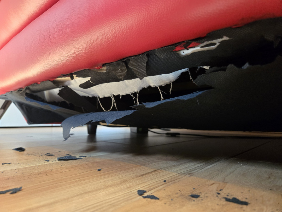 ニトリのソファー、1年半でこの状態です。非常に残念です。