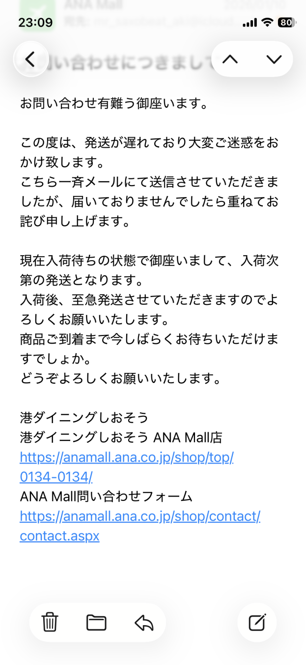 甘エビ頼んでしばらくして、もうすぐ来るのか確認していたら、発送済みとなり、待てども来ませんでした、問い合わしても入荷待ちとの事でした、それから1週間待てども連絡無し、配達違えたのかわからんが、何も対応無しですね、早く返金して欲しいです