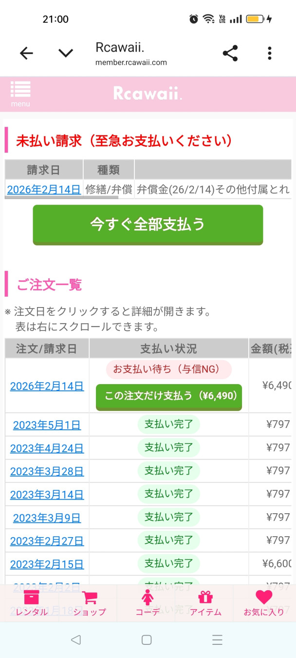 日にちが経ち「未払い」案内が先週から来るようになりました。