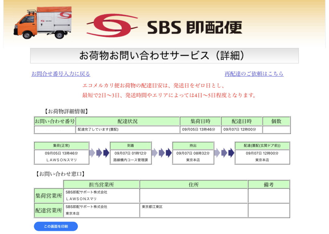 荷物が何処に行ってしまったのか‥sbs即配のミスなのに