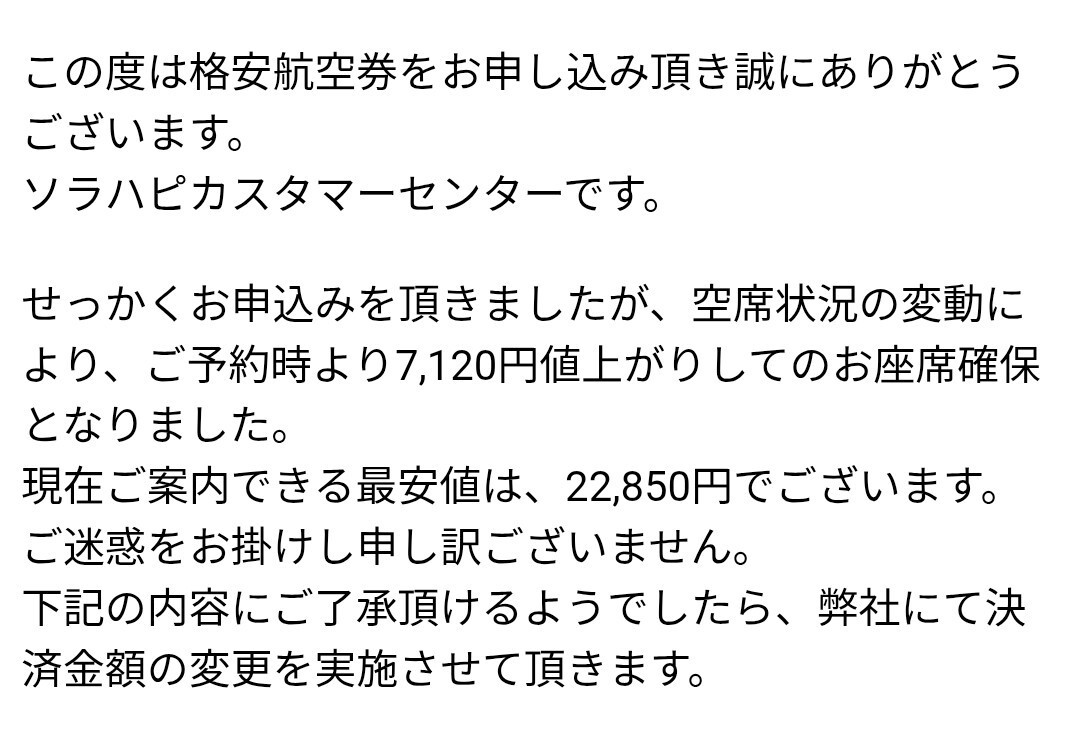 後からソラハピからメールが来たので「外部委託したのかな?」と思ってしまいました。航空券の代金の他に決済事務手数料2413円が引き落としされてましたが、久々に予約したのでこういうものかと思ってしまいました。