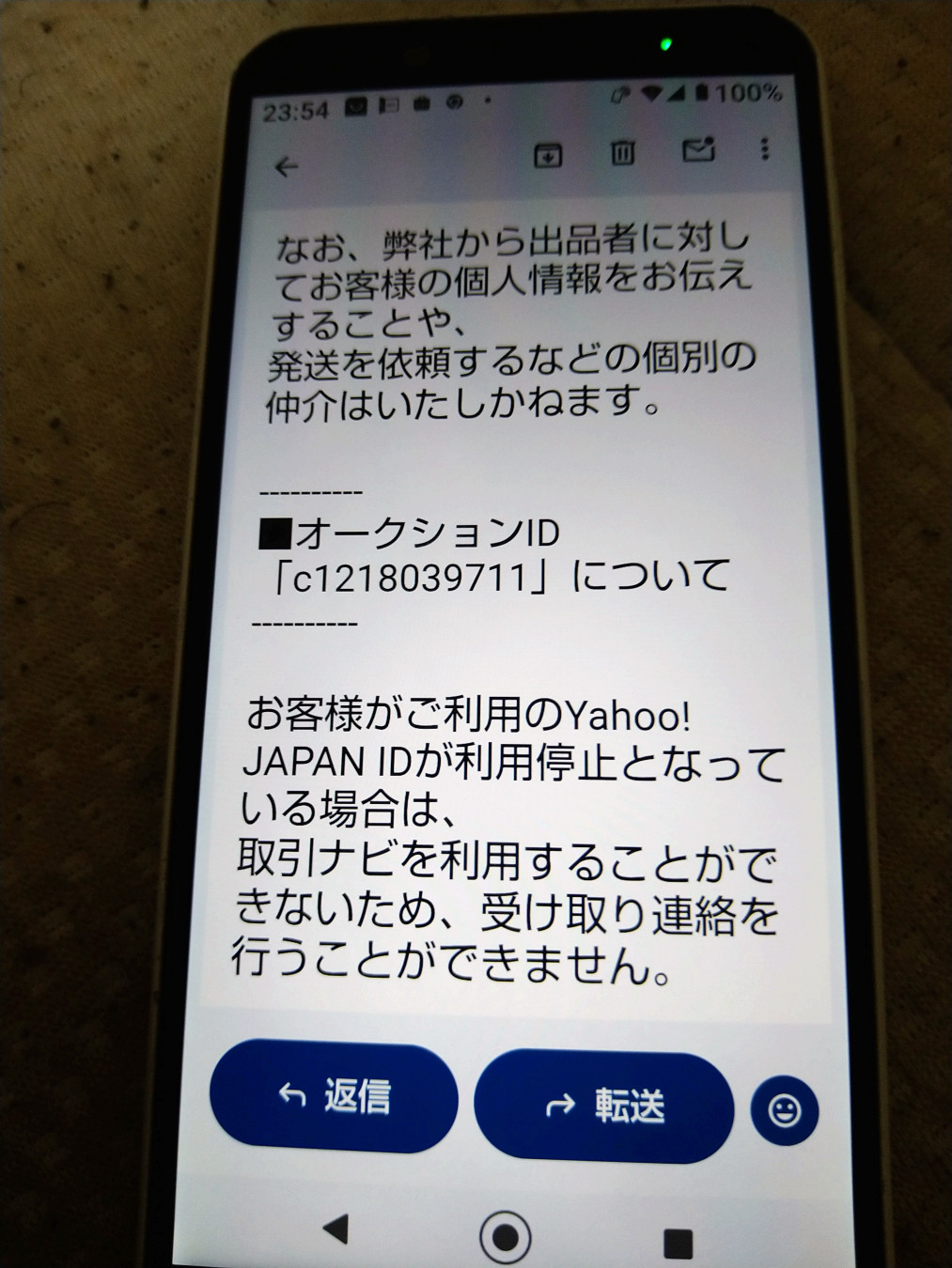ヤフオクではメッセージが無視されることが多いというのも納得。